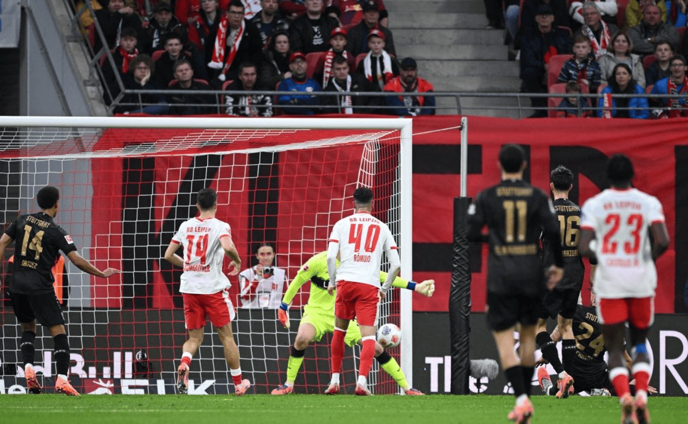 接下来的第41分钟,罗慕洛获得了近距离的射门机会,他试图打远角,可惜皮球稍稍偏出了左侧立柱,差之毫厘。就在比赛进入补时阶段,第45分钟,莱比锡终于打破僵局,沙博特在解围时不慎将球挡进了自家球门,送给莱比锡一粒乌龙球,斯图加特陷入被动。上半场结束,莱比锡以1-0领先。